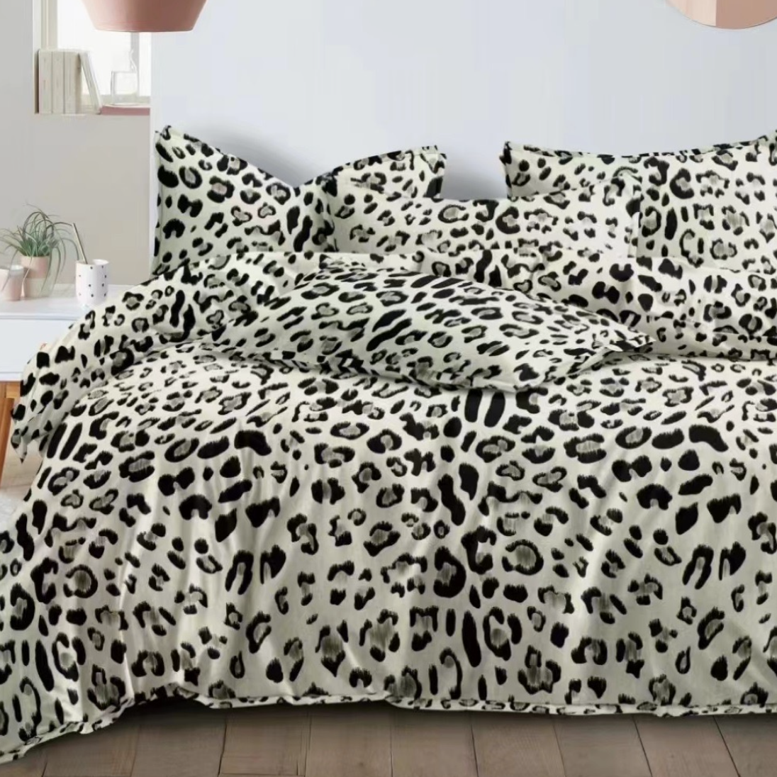 - Komplet beżowej pościeli 160x200 skład: 100% mikrowłókno dwustronna poszewka na kołdrę i 2 x poszewka na poduszkę 70x80, prześcieradło 180x230, pościel w panterę, zwierzęcy wzór