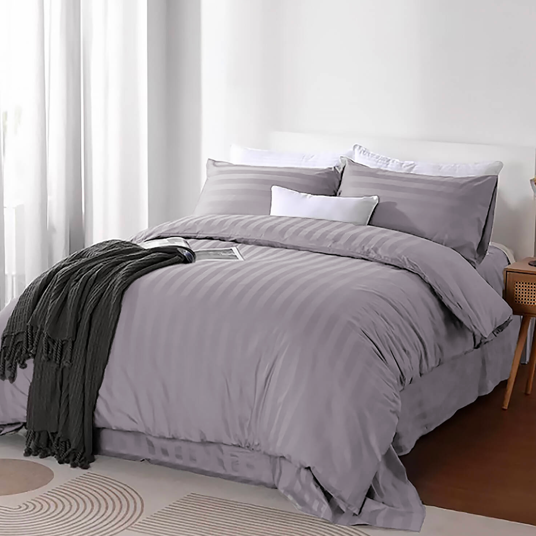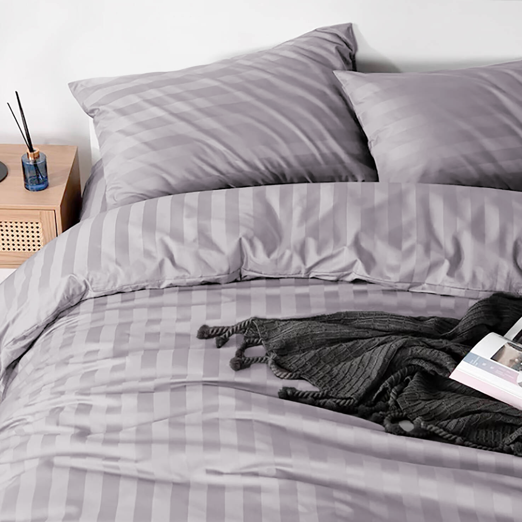 Pościel w pasy szarofioletowa 200x220 3 el. Kim Lilac Grey H-011