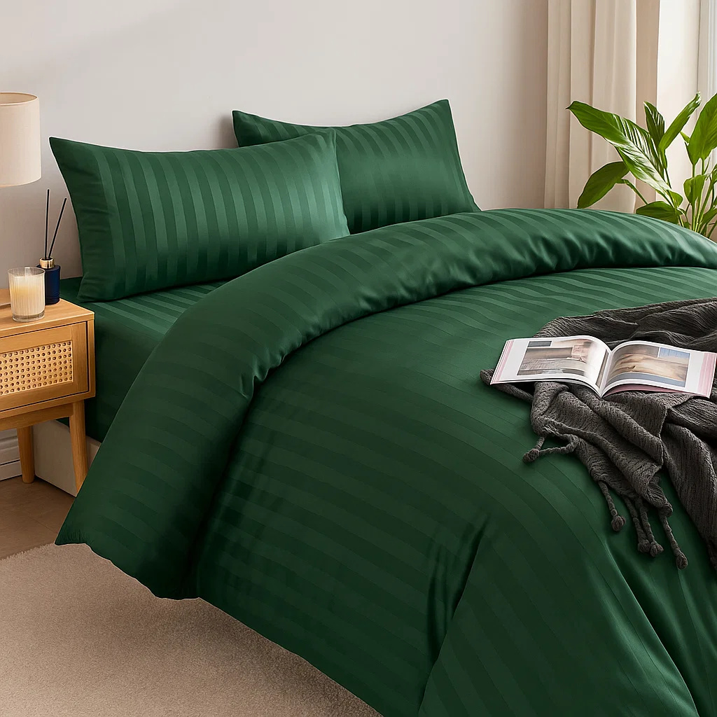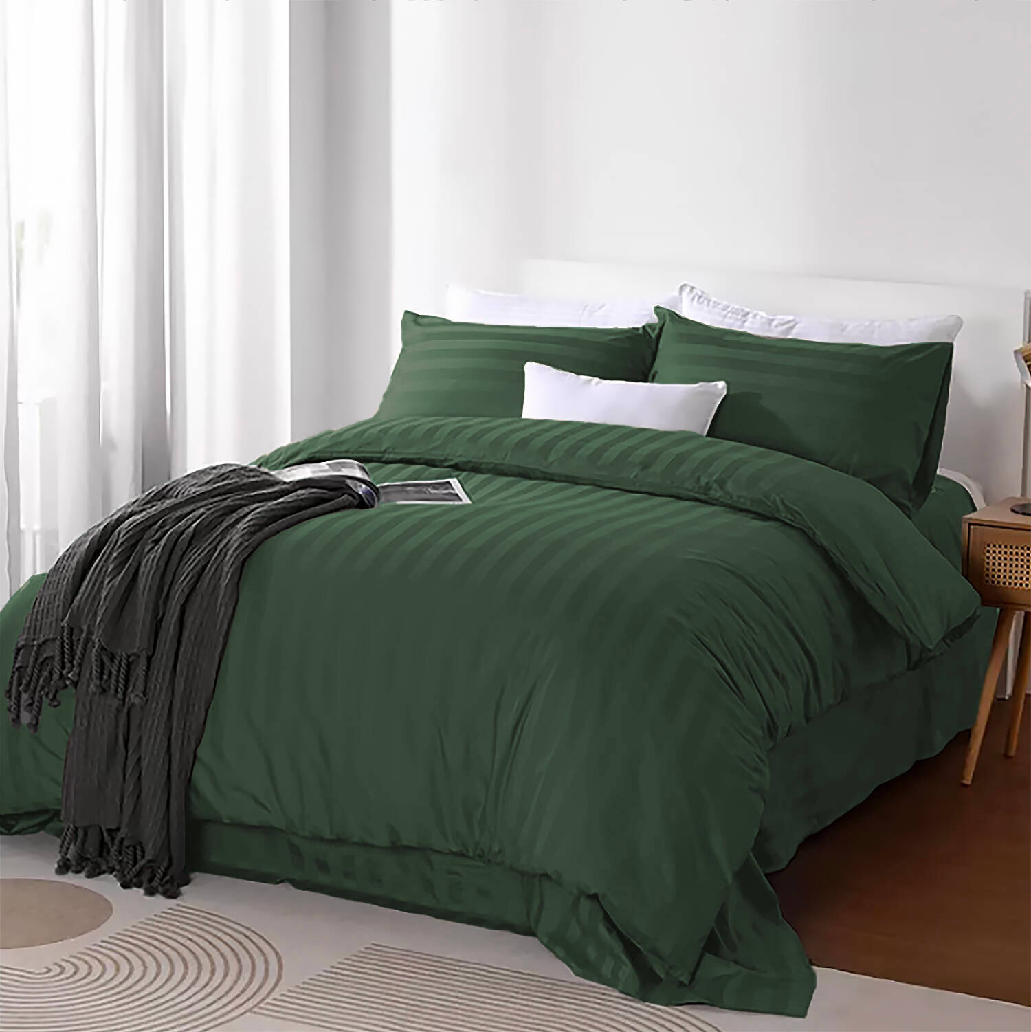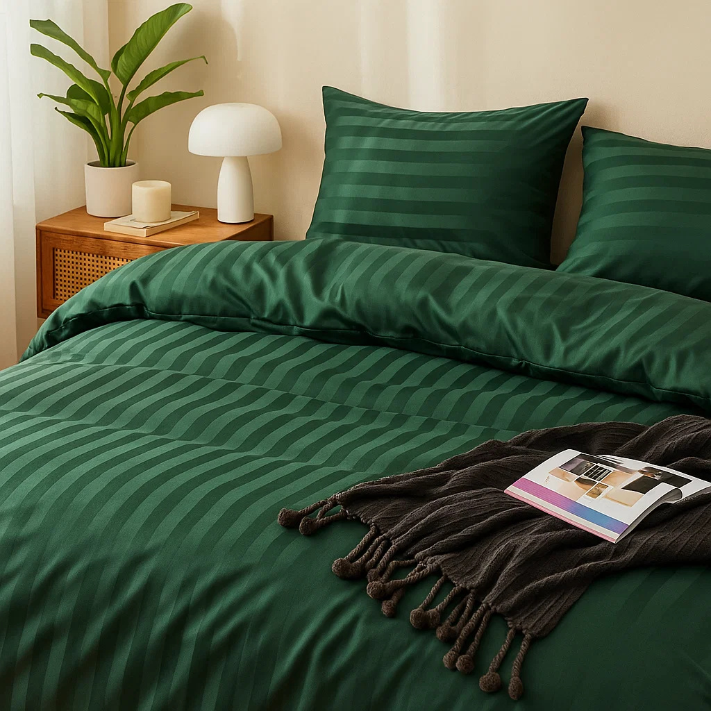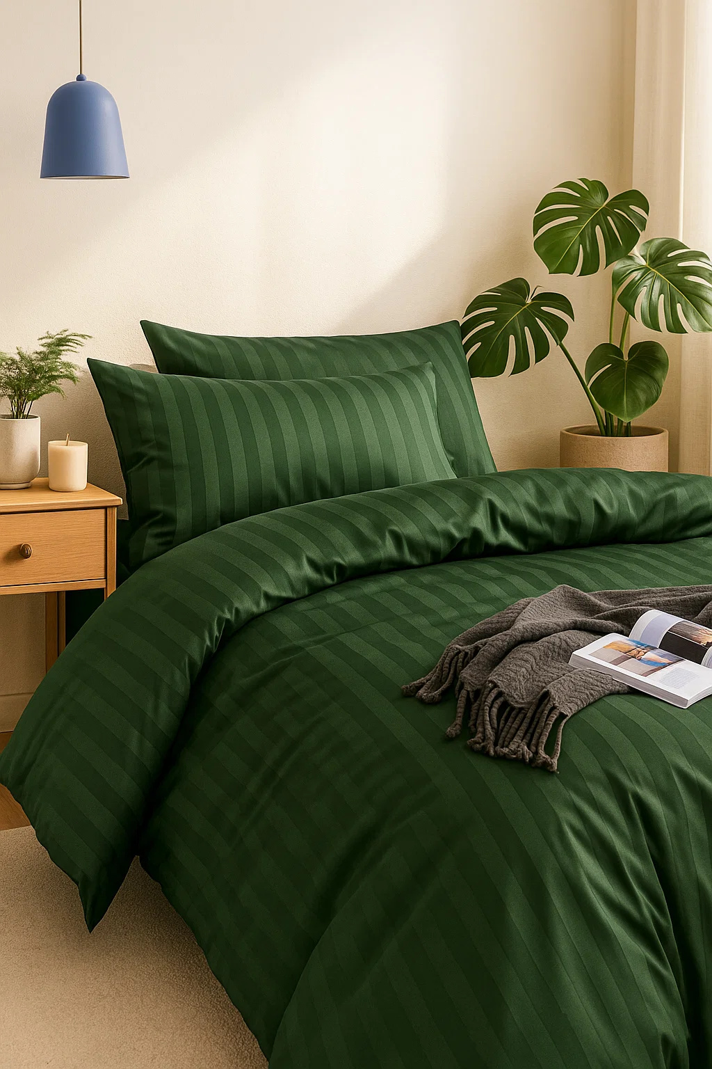 - Komplet butelkowej zielonej pościeli satynowej w zdobienia żakardowe 160x200 skład: 100% bawełna syntetyczna dwustronna poszewka na kołdrę i 2 x poszewka na poduszkę 70x80, gładka pościel w kolorze ciemna zielona, w paski, adamaszek