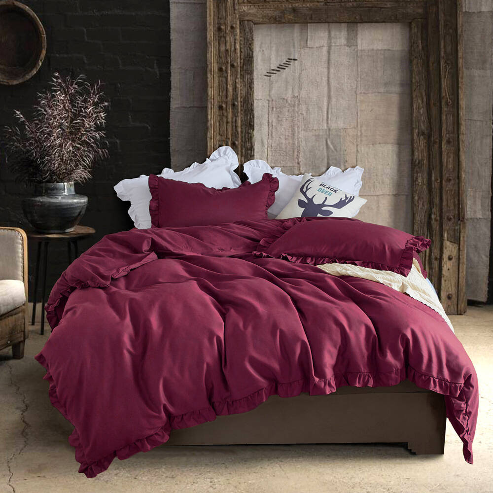 - Podkreśl elegancję swojej sypialni pościelą z urokliwą falbaną w eleganckim bordowym odcieniu. Luksusowy komfort i wyjątkowy styl zapewnią Ci niezapomniane noce. Zanurz się w miękkości i klasyce :)