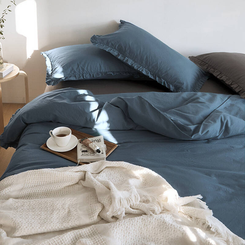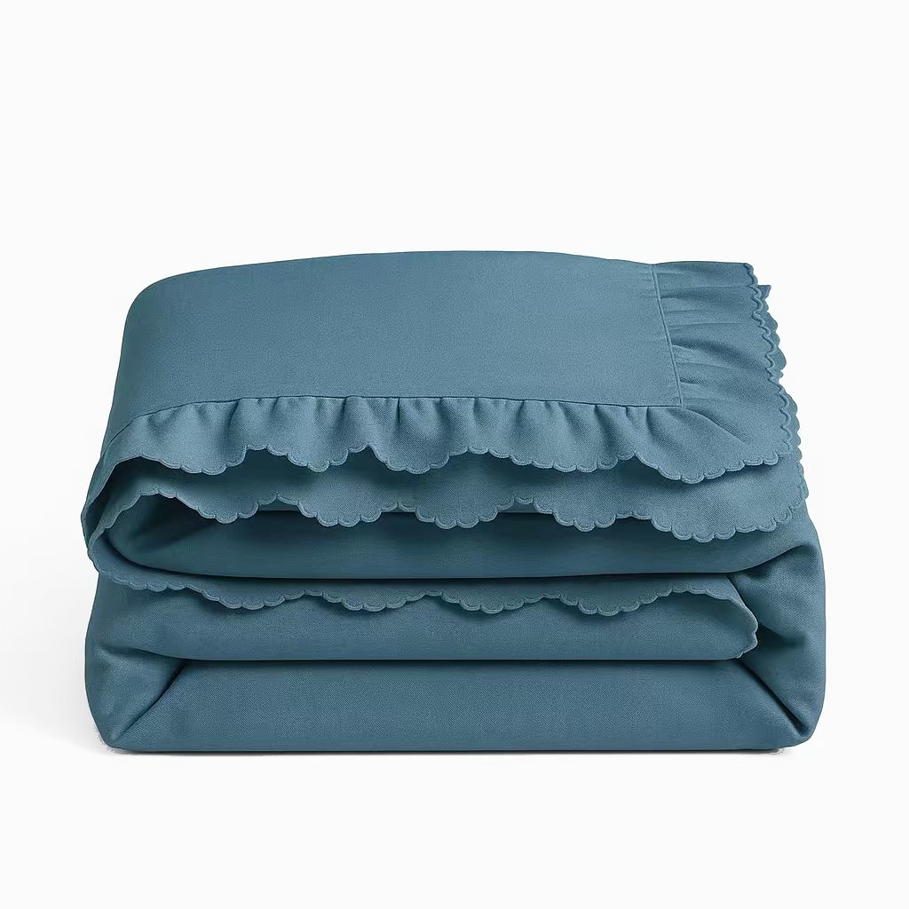 - Podkreśl elegancję swojej sypialni pościelą z urokliwą falbaną w eleganckim odcieniu niebieskiego. Luksusowy komfort i wyjątkowy styl zapewnią Ci niezapomniane noce. Zanurz się w miękkości i klasyce :)