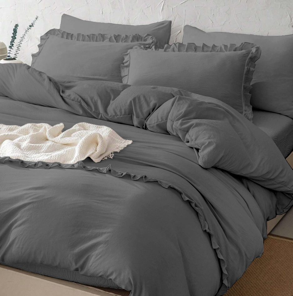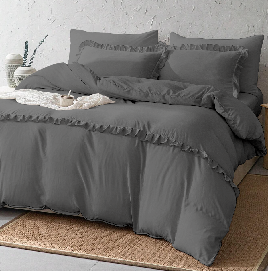 Pościel z falbanką ciemna szara 160x200 3 el. FFH2745
