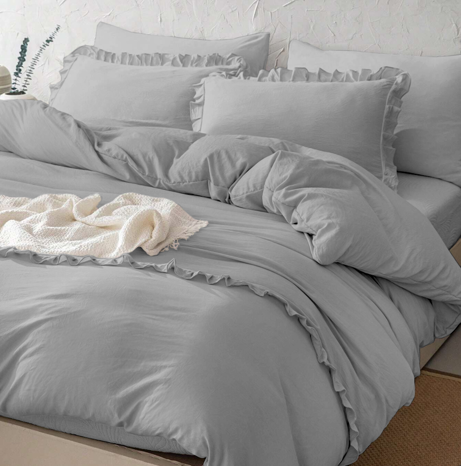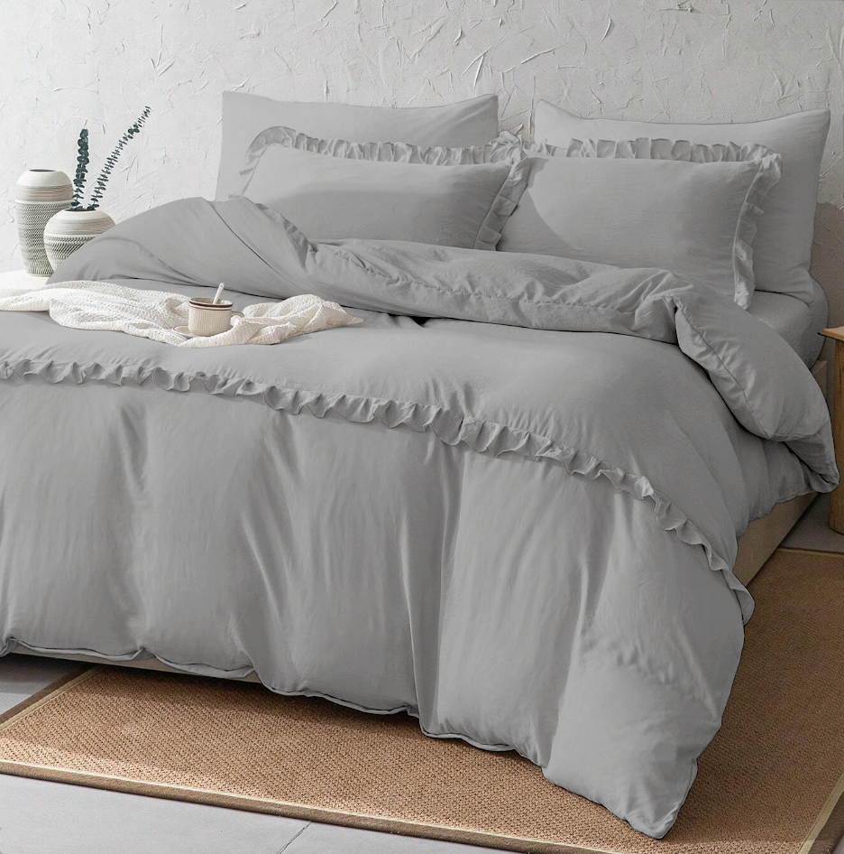 Pościel z falbanką jasna szara 200x220 3 el. FFH2746