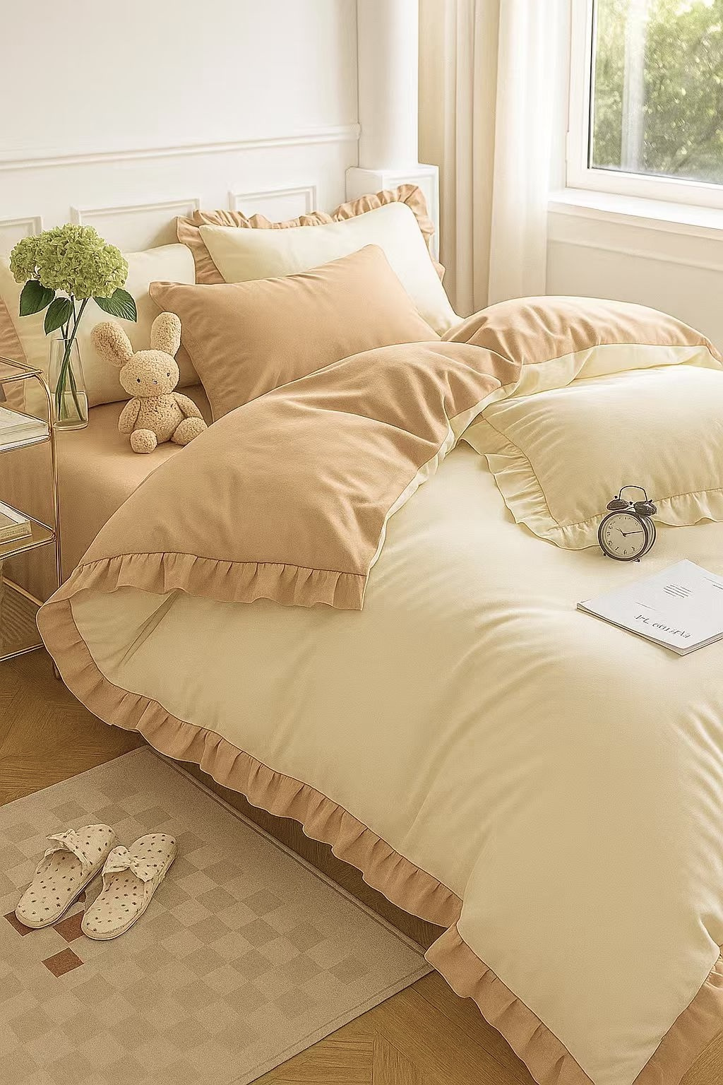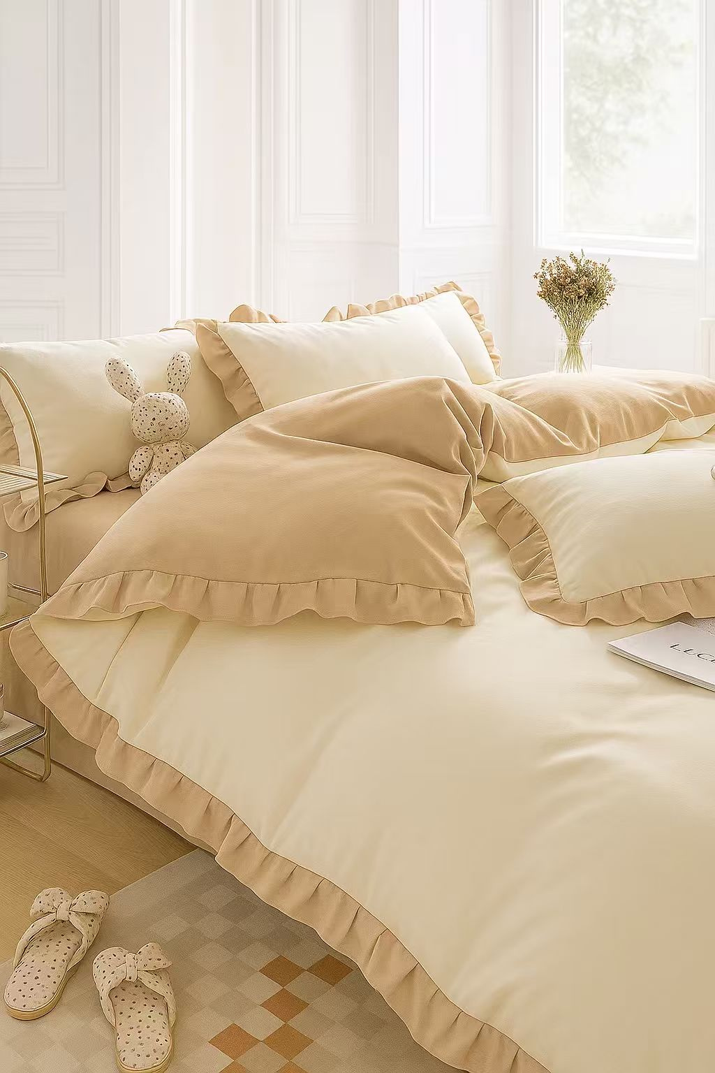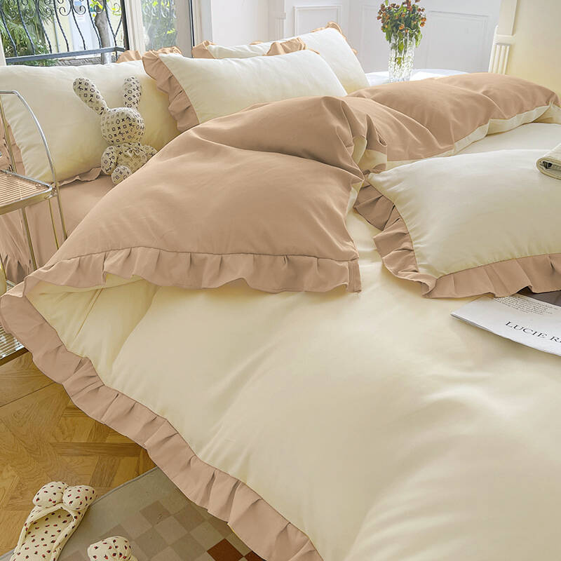 Pościel z falbanką kremowa i beżowa 160x200 3 el. dwukolorowa FAB77