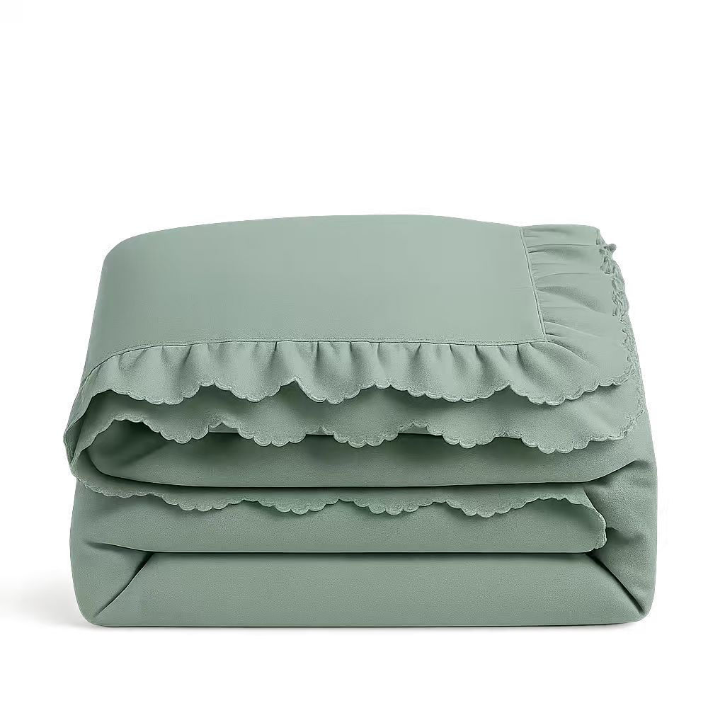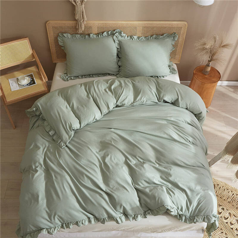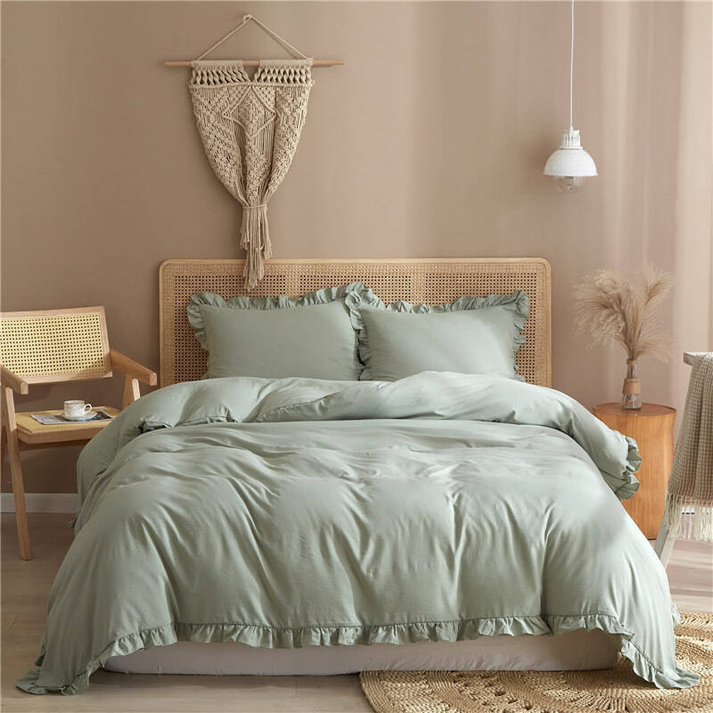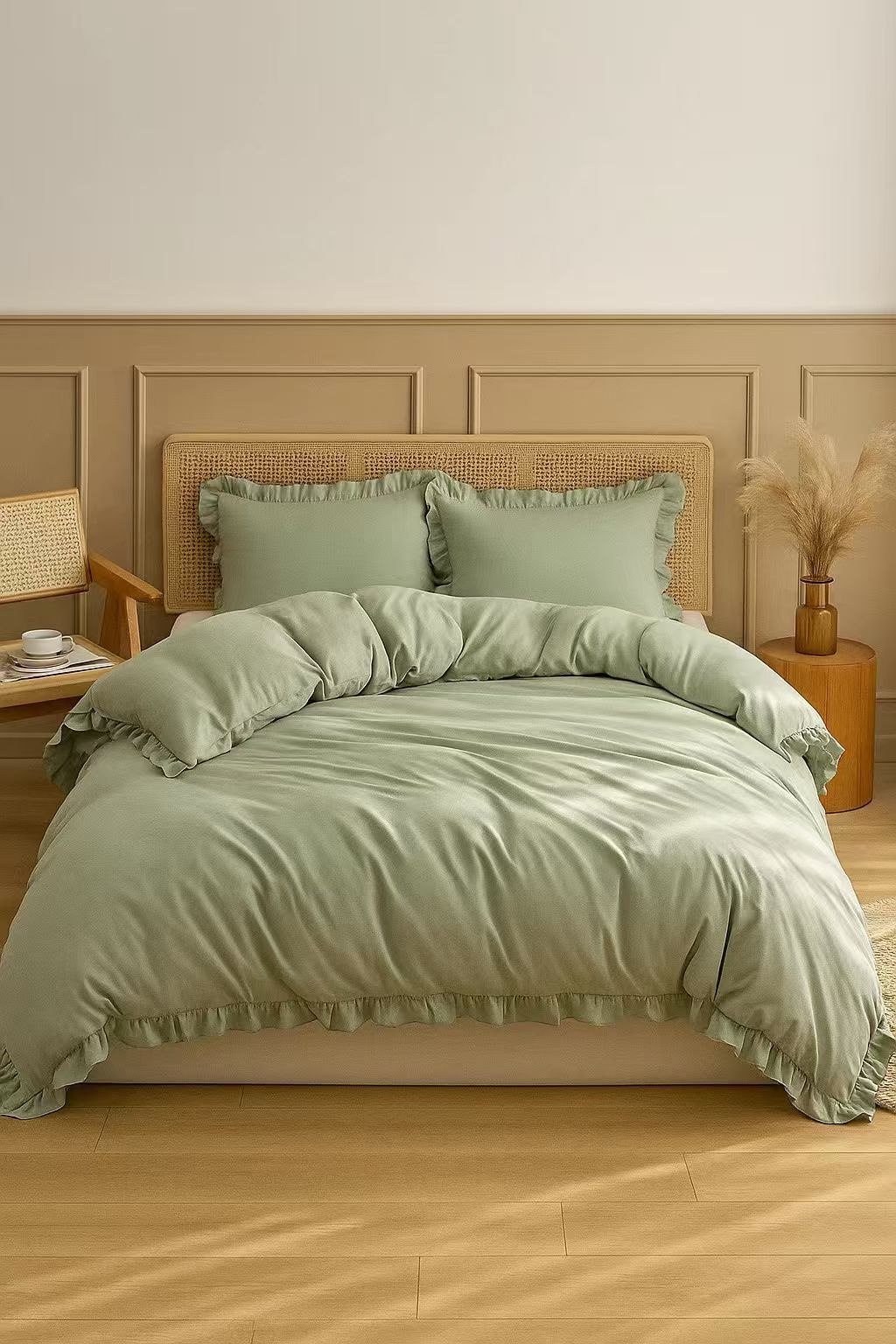 Pościel z falbanką szałwiowa 200x220 3 el.