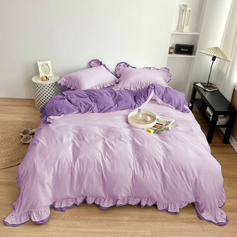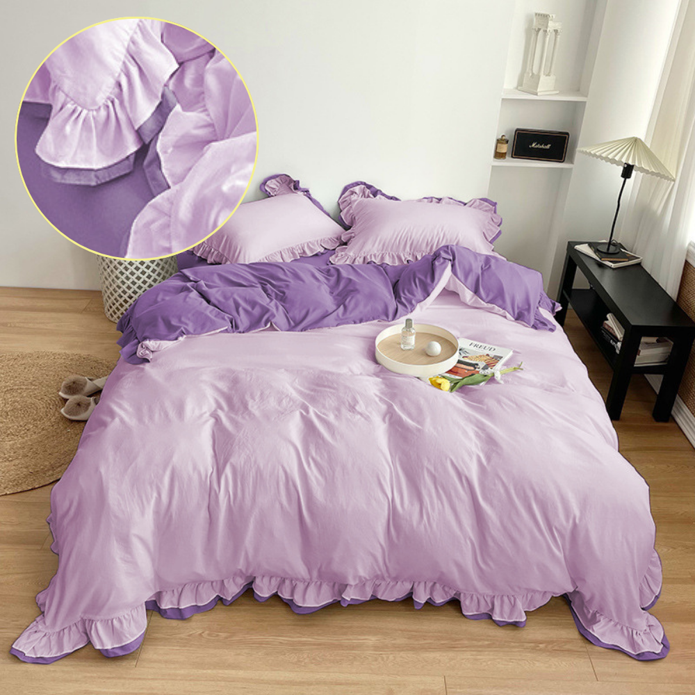 Pościel z podwójną falbanką dwukolorowa różowo-fioletowa 200x220 3 el.