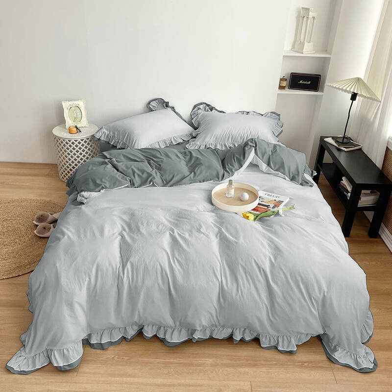 Pościel z podwójną falbanką dwukolorowa szara 200x220 3 el.