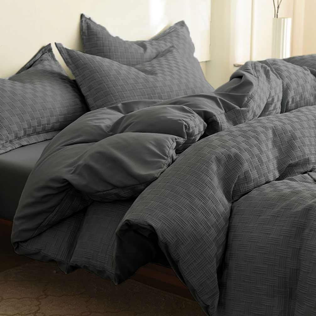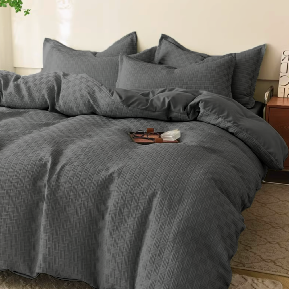 Pościel żakardowa kora wafelkowa ciemna szara 200x220 3 el.