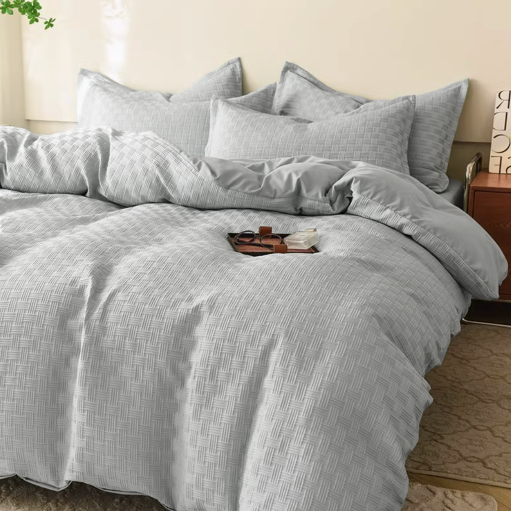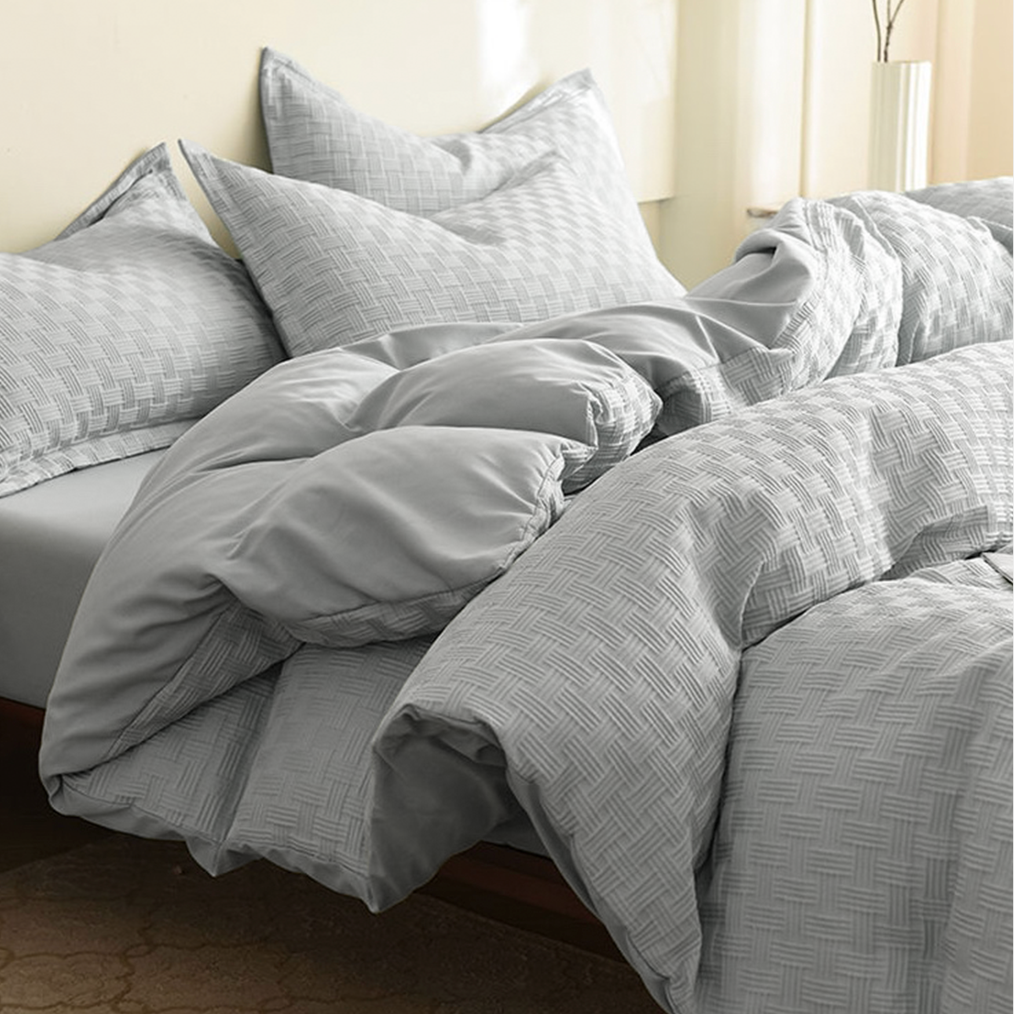 Pościel żakardowa kora wafelkowa jasna szara 200x220 3 el.