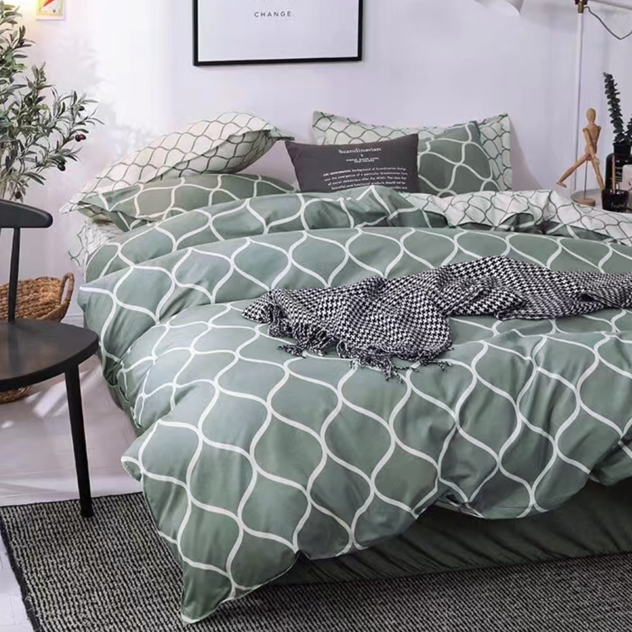 • Pościel geometryczna elegancka, zielonoszara, kremowa