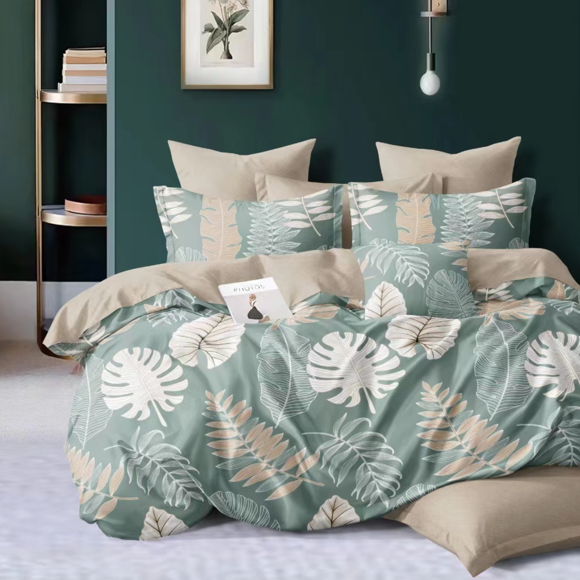 Pościel zielono-beżowa w liście 200x220 4 el. Loreto C-123