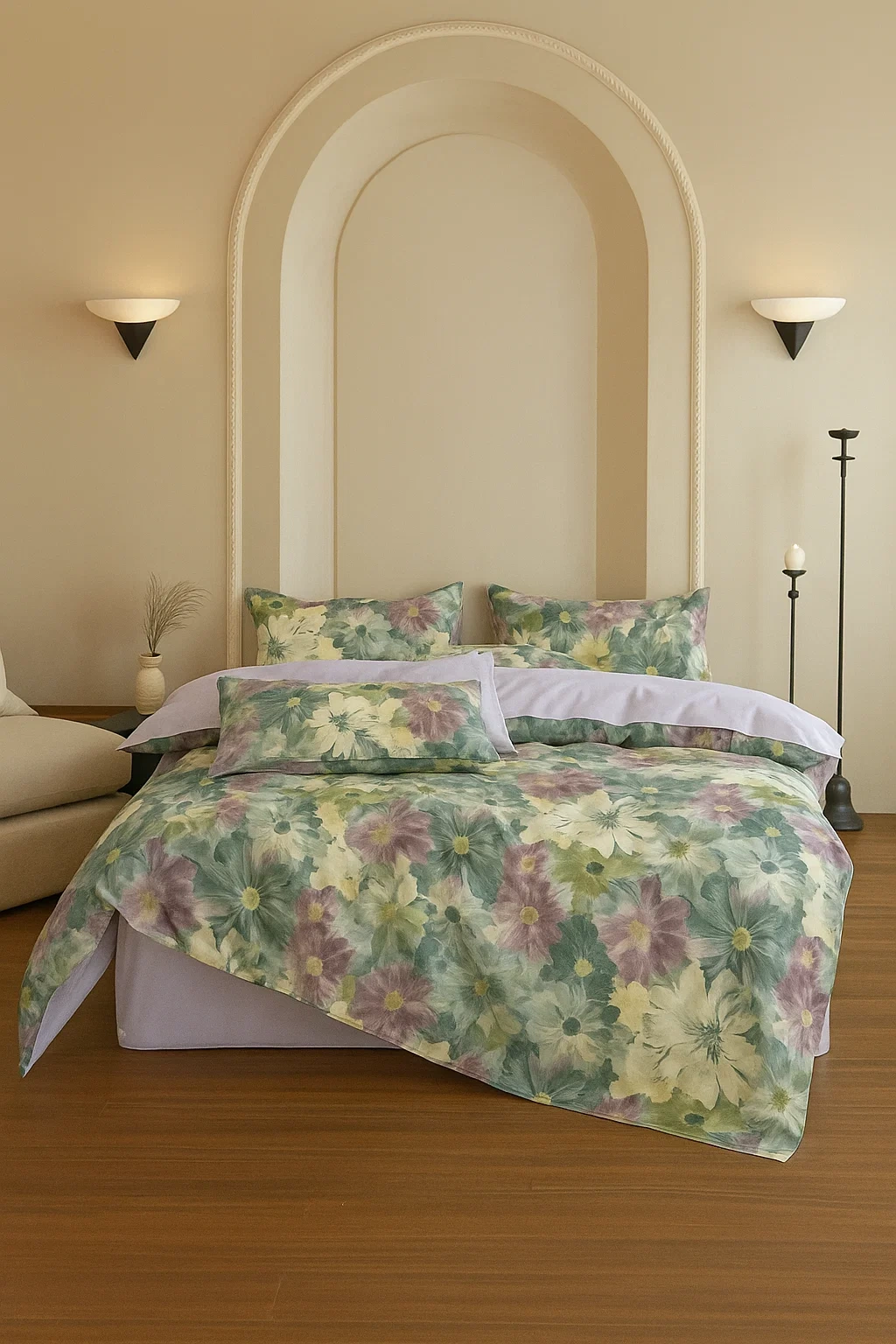 Pościel zielono-fioletowa w kwiaty 160x200 3 el. Tenabo C-130