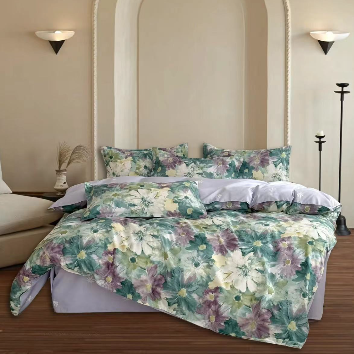 Pościel zielono-fioletowa w kwiaty 200x220 3 el. Tenabo C-130