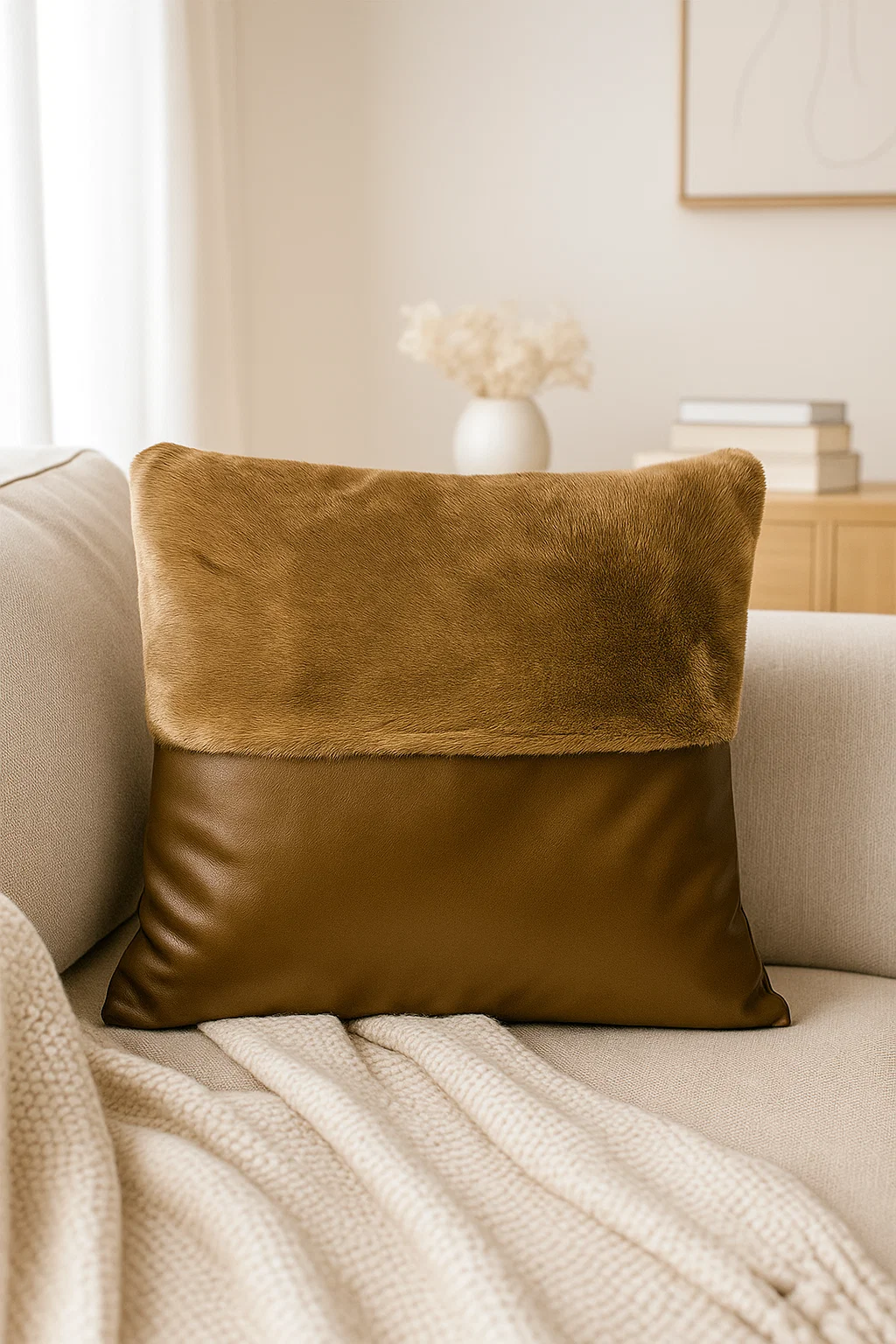 Odmień swoje wnętrze ciekawym rozwiązaniem, jakim jest połączenie eko-skóry z milutkim futerkiem Rabbit Idealnie sprawdza się jako dekoracja sofy lub łóżka. Taka poduszka doda elegancji w każdym domu!