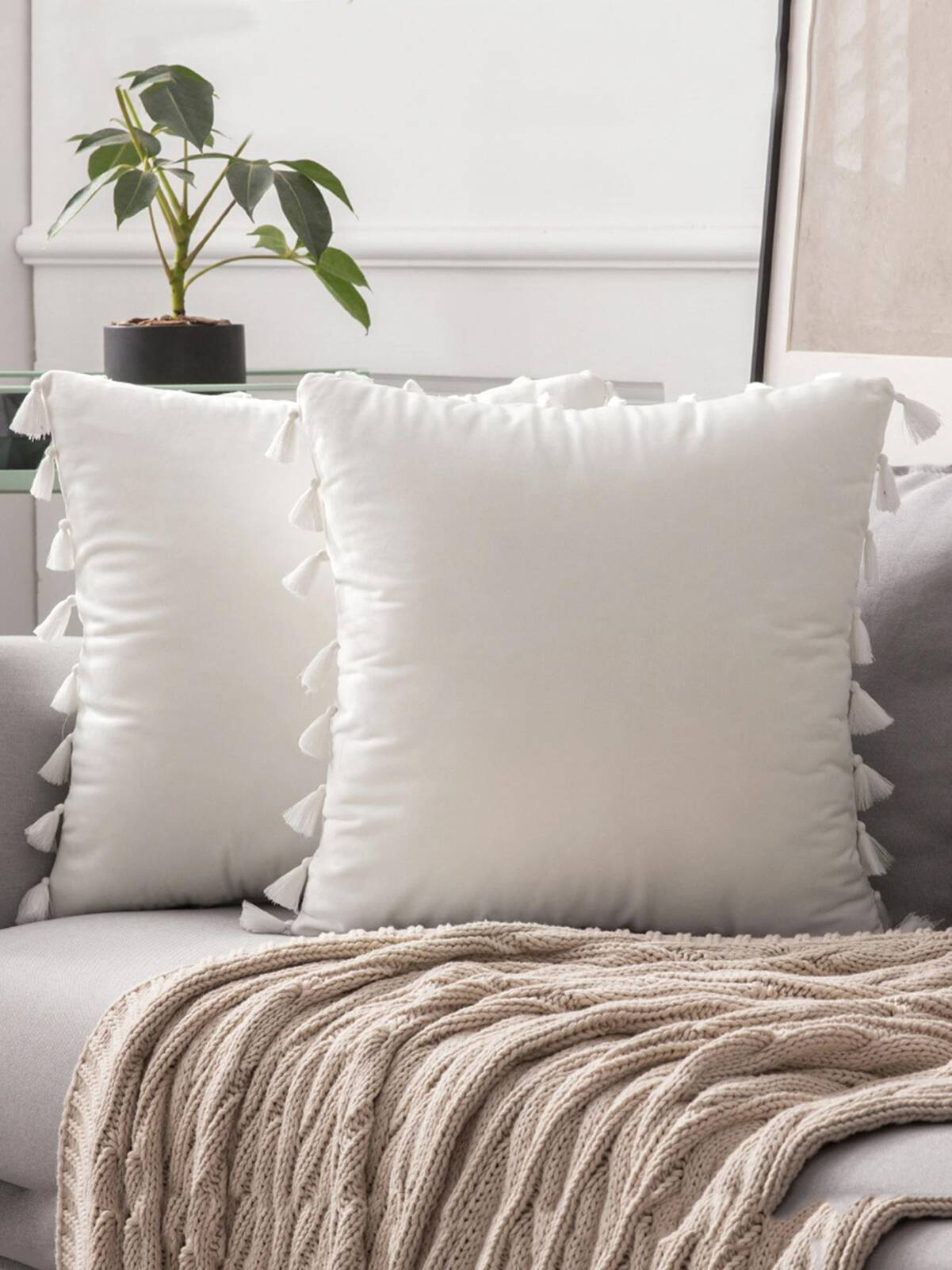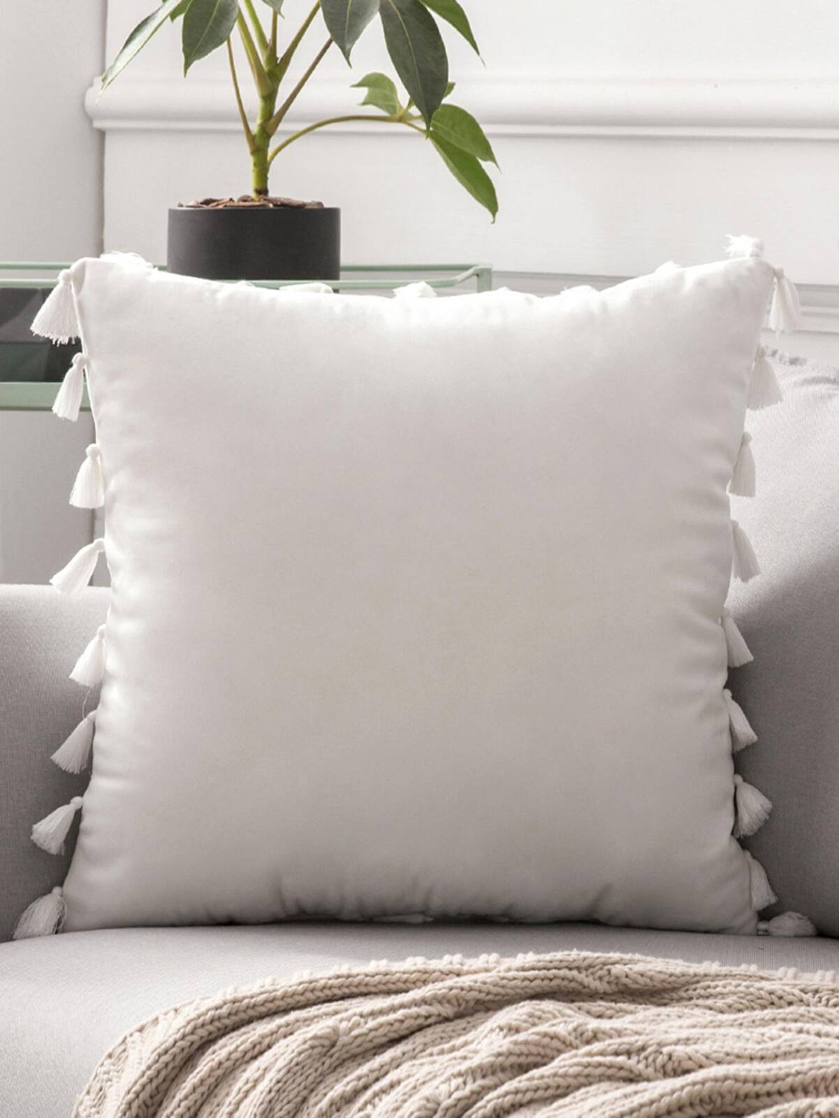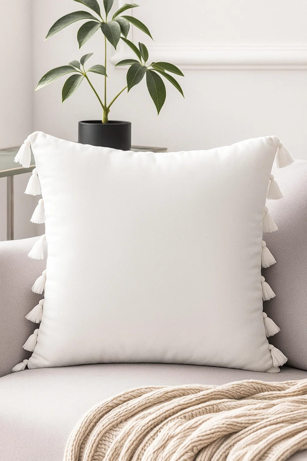 POSZEWKA NA PODUSZKĘ WELUROWA BIAŁA Z FRĘDZLAMI 40X40