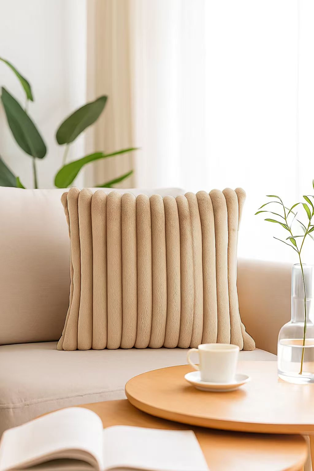 Poszewka na poduszkę dekoracyjna 40x40 beżowa tłoczona pluszowa