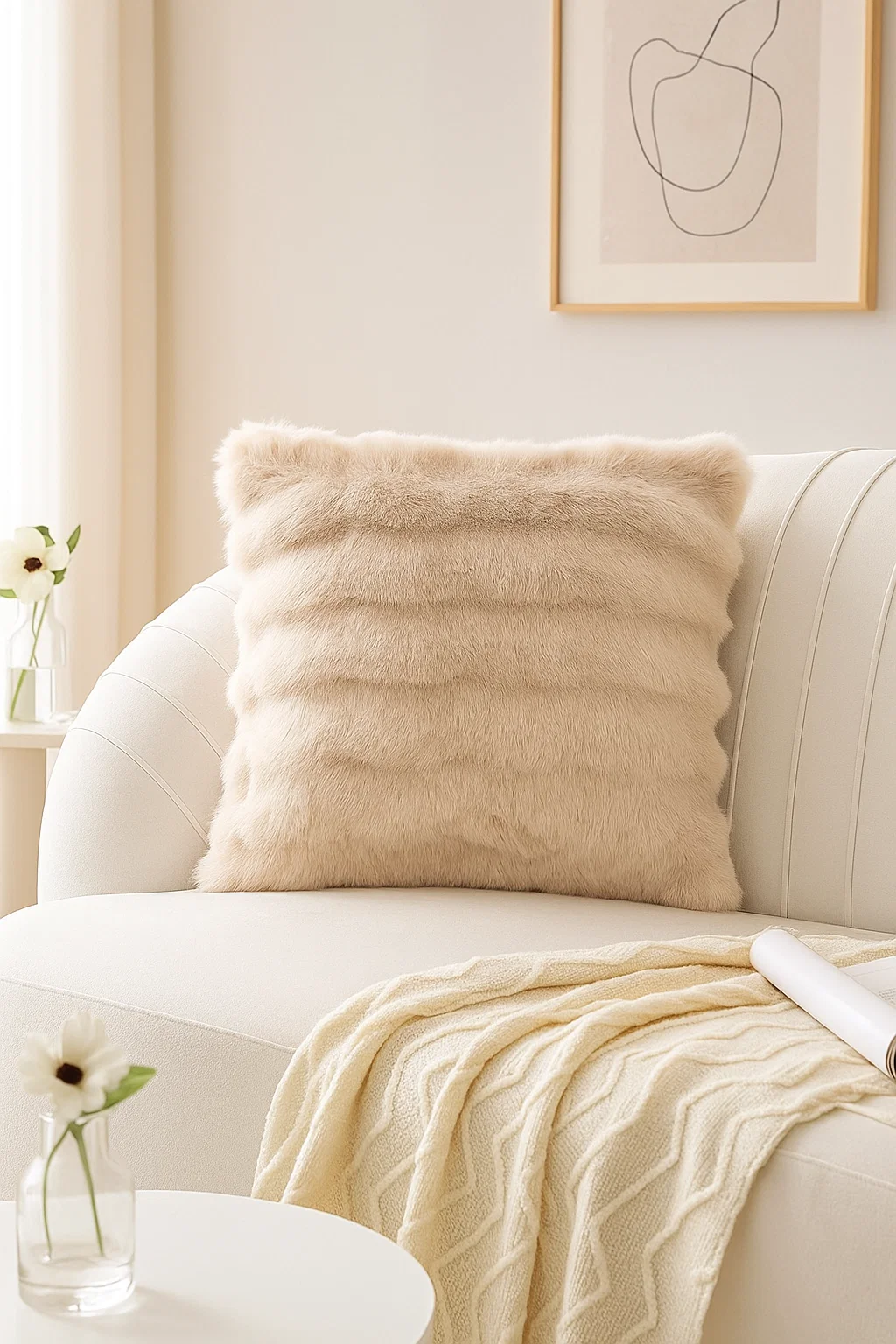 POSZEWKA PLUSZOWA BEŻOWA NA PODUSZKĘ 40X40