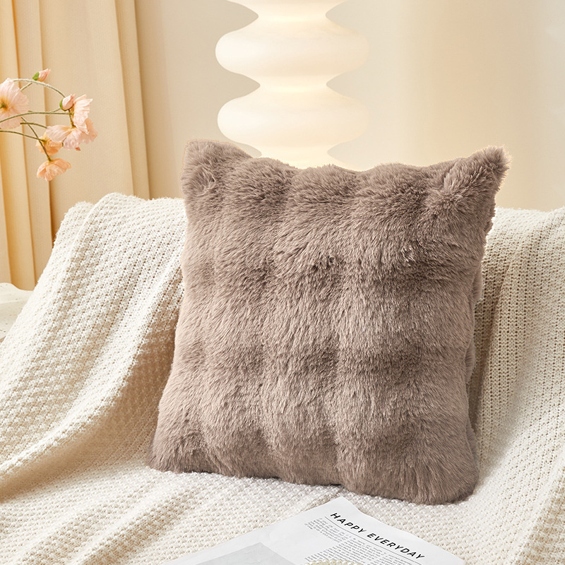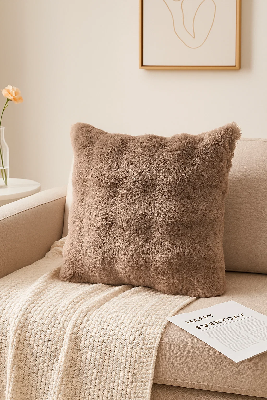 POSZEWKA PLUSZOWA CIEMNA BEŻOWA NA PODUSZKĘ 40X40