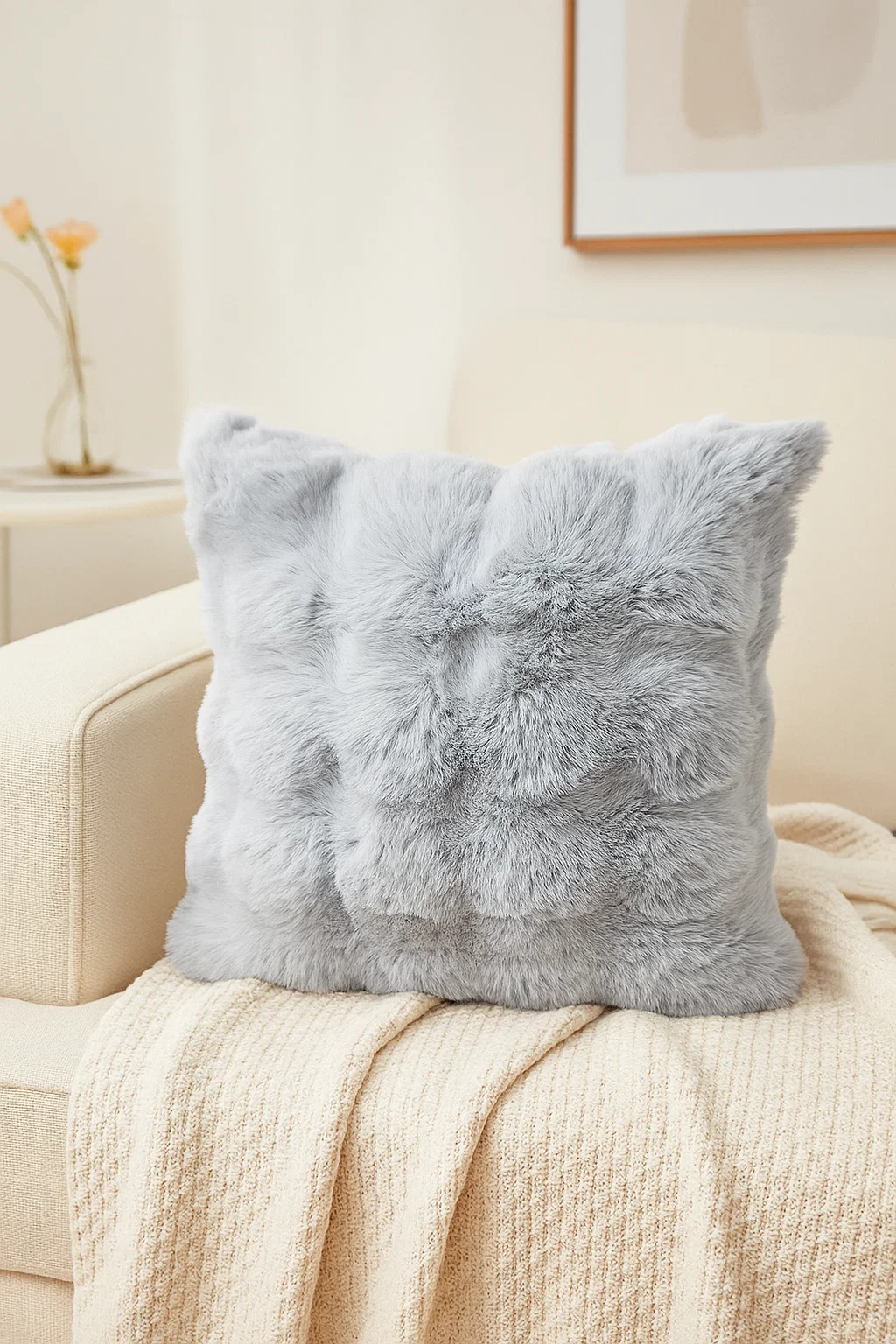 POSZEWKA PLUSZOWA JASNA SZARA NA PODUSZKĘ 40X40