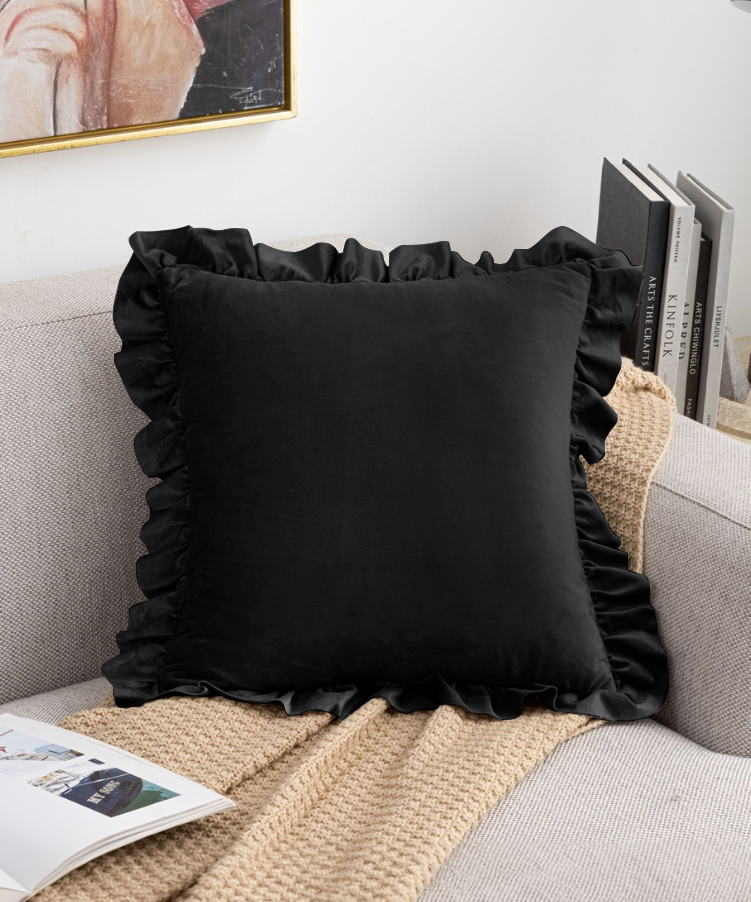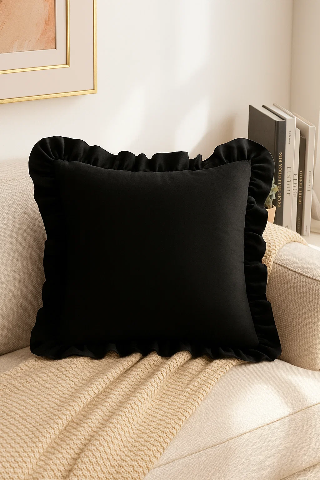 - Poszewka na poduszkę dekoracyjna 40x40 czarna z falbanką