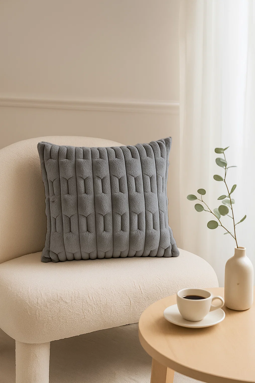 Poszewka na poduszkę dekoracyjna 40x40 tłoczona we wzór 3D pluszowa ciemna szara