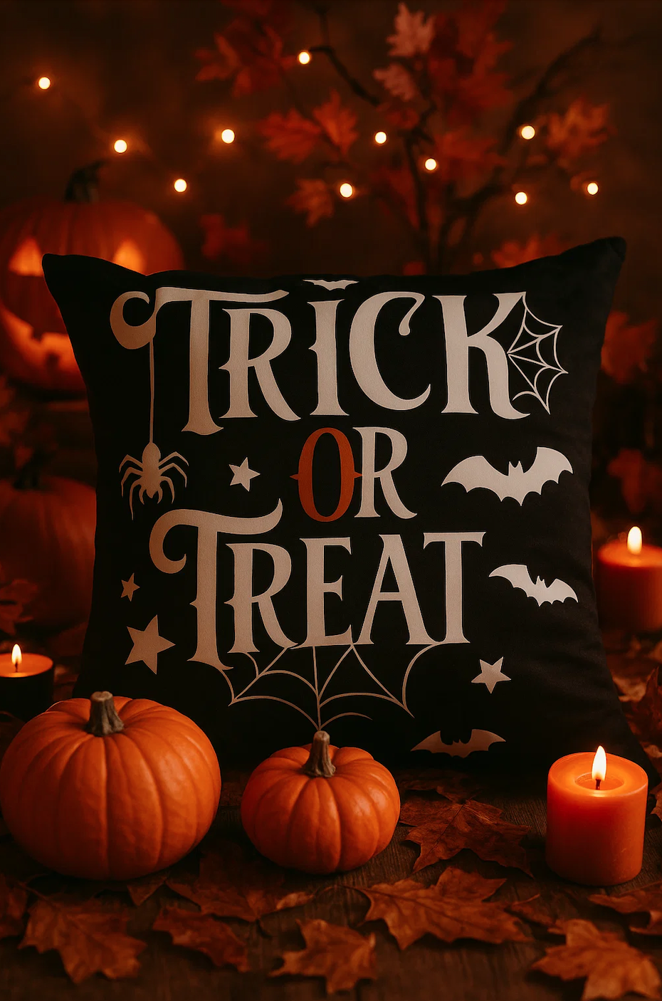 Poszewka na poduszkę Halloween czarna z napisem 40x40 TRICK OR TREAT