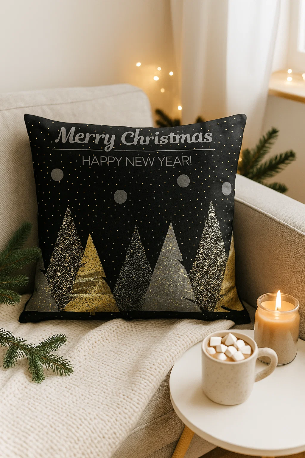 Opinie o Poszewka na poduszkę świąteczna czarna w choinki 40x40