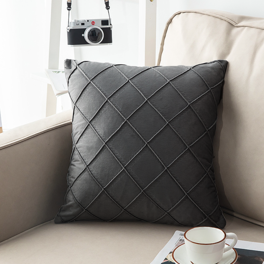 Poszewka na poduszkę welurowa pikowana z listkami ciemna szara 40x40