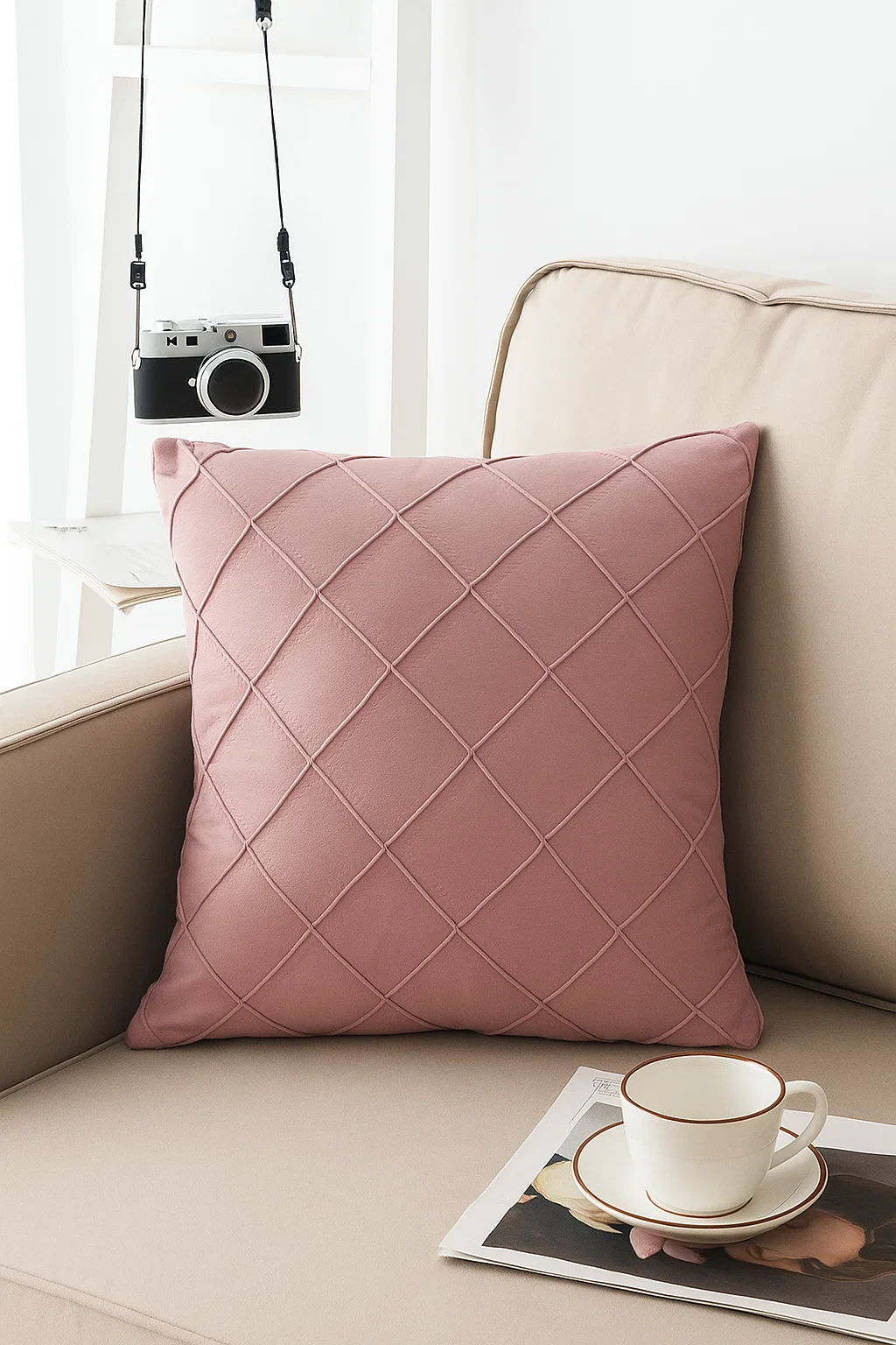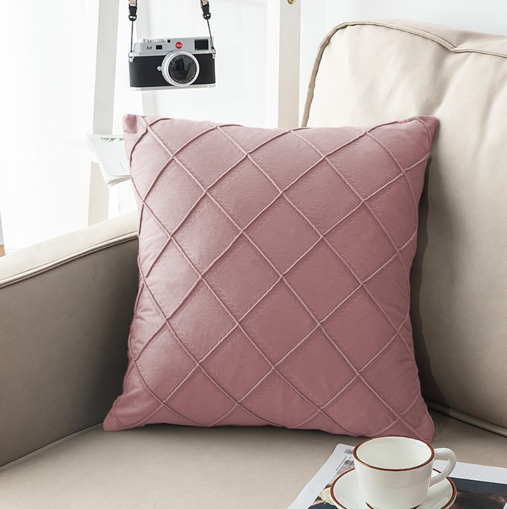 Poszewka na poduszkę welurowa pikowana z listkami różowa 40x40
