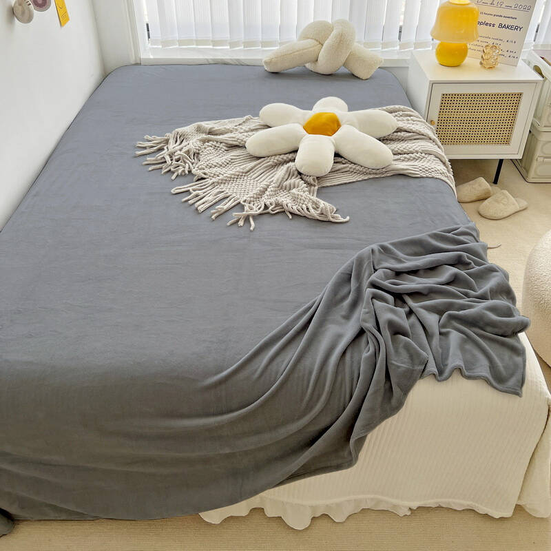 Prześcieradło pluszowe tradycyjne bez gumki MIŚ ciemne szare 160x230