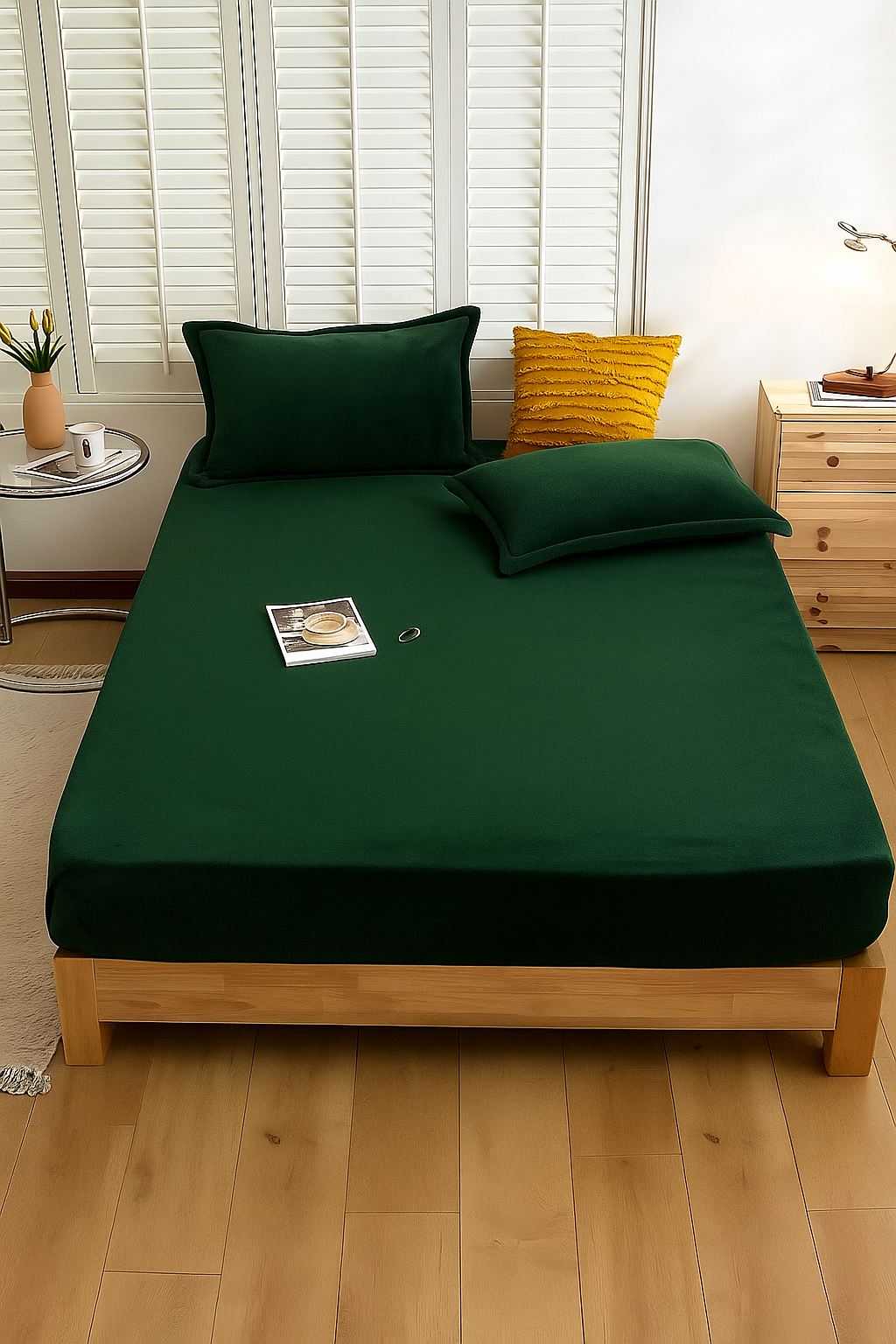 - Miękkie i przytulne prześcieradło z pluszu typu MIŚ w kolorze butelkowym zielonym. Elastyczna gumka na brzegach zapewnia idealne dopasowanie do materaca o wymiarach 90x200 cm. Ciepłe, delikatne w dotyku i łatwe w pielęgnacji — idealne na chłodniejsze dni.