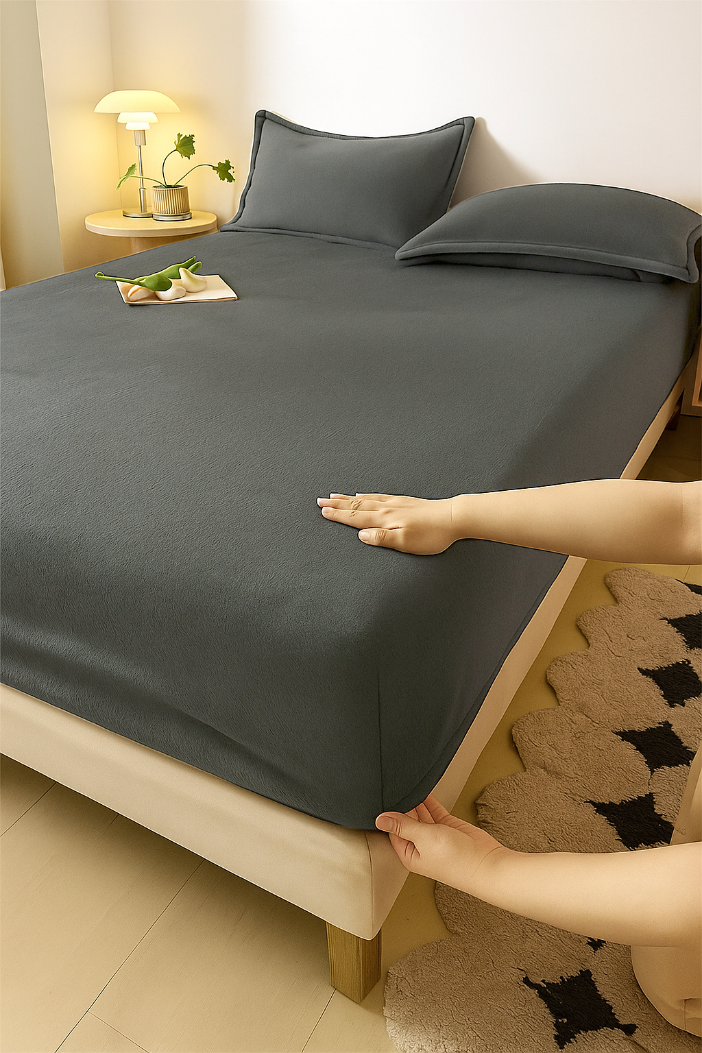 - Miękkie prześcieradło z gumką 200x220 cm z pluszowej mikrofibry. Elastyczne, przyjemne w dotyku, dopasowuje się do materaca i zapewnia komfortowy sen każdej nocy. Miłe i ciepłe, idealne na jesień i zimę.