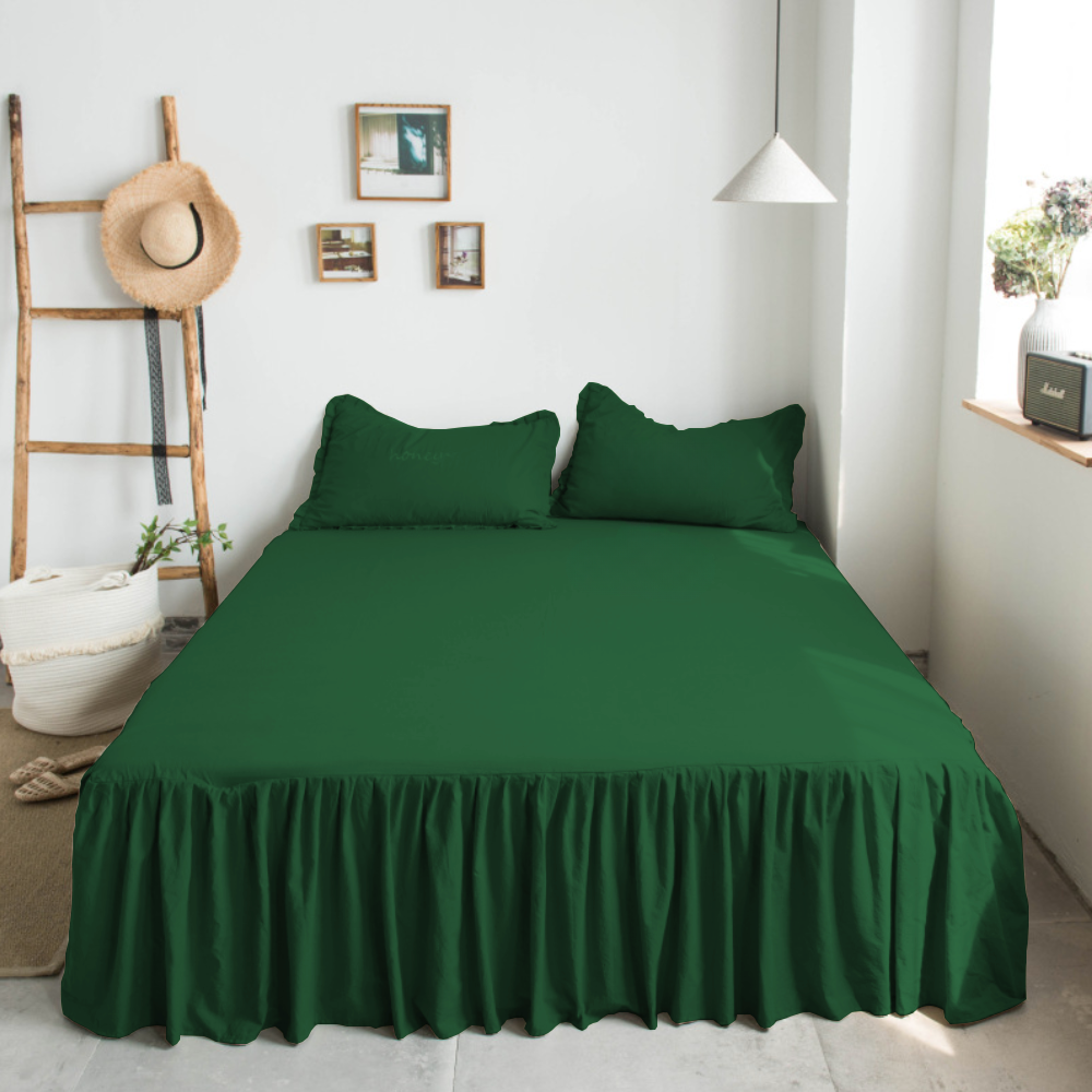 Prześcieradło z falbanką butelkowe zielone 200x220