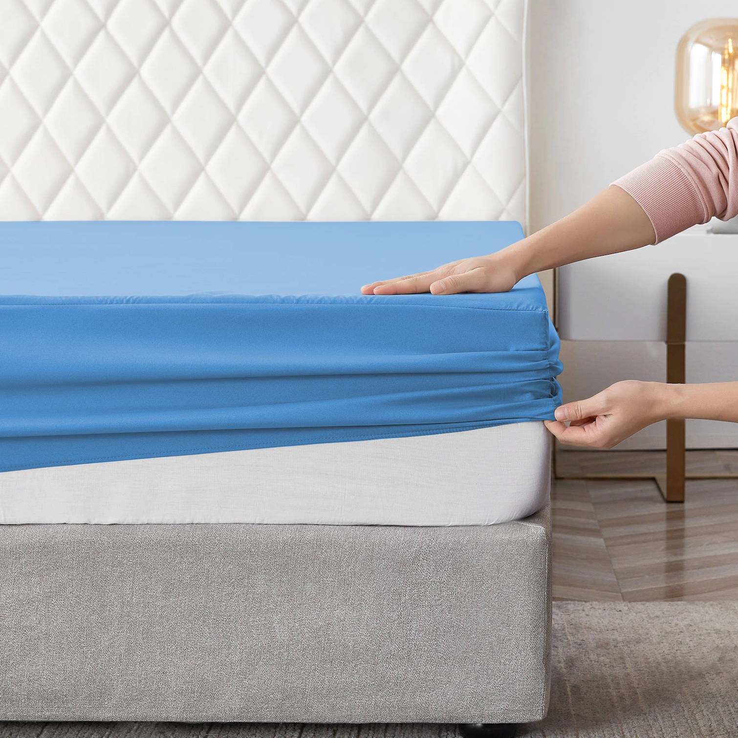 Prześcieradło z gumką bawełniane jasne niebieskie 140x200