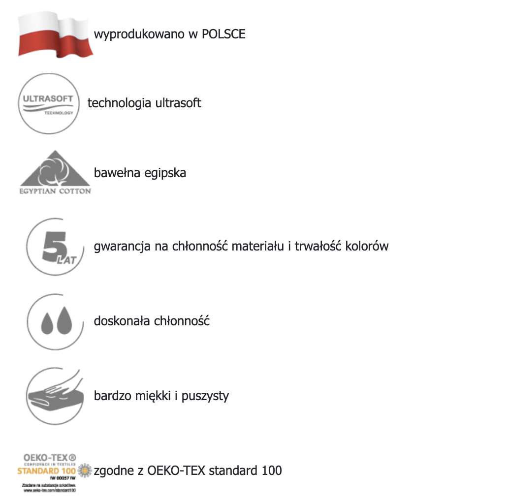 • 5 lat gwarancji na chłonność materiału i trwałość kolorów