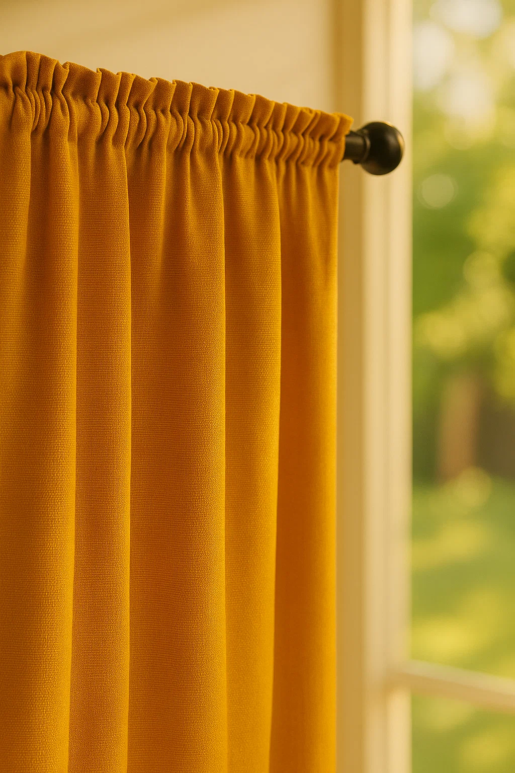 Zasłona z jednokolorowej tkaniny poliestrowej to dekoracja okienna, która podkreśla styl oraz elegancję wnętrz nowoczesnych i klasycznych. Tkanina zjawiskowo odbija światło.