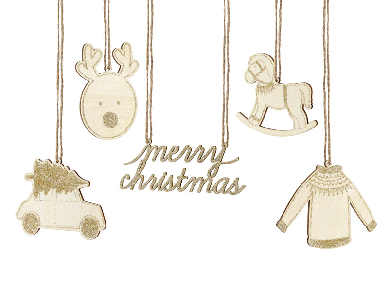 Zawieszki świąteczne drewniane z brokatem 10 sztuk