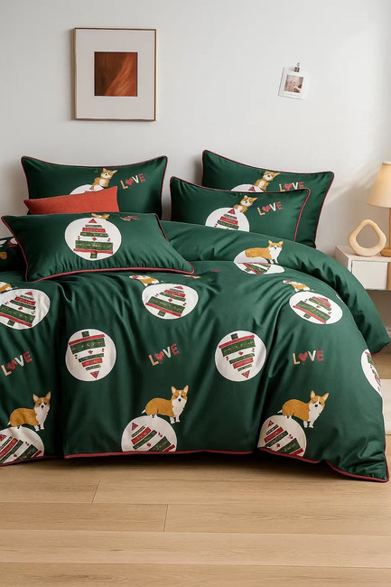 Pościel świąteczna butelkowa zielona 160x200 4 el. C1-161