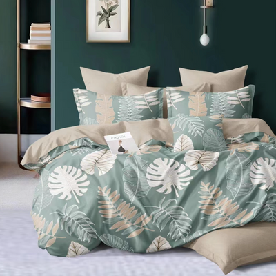 Pościel zielono-beżowa w liście 200x220 3 el. Loreto C-123