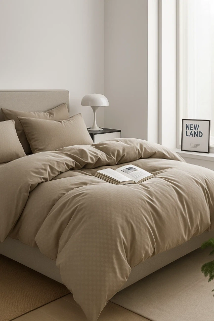 Pościel 200x220 4 el. gładka dwukolorowa jasno-ciemna beżowa S-027