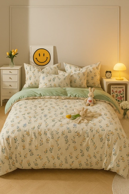 Pościel bawełniana w drobne kwiatki 160x200 3 el. Terry