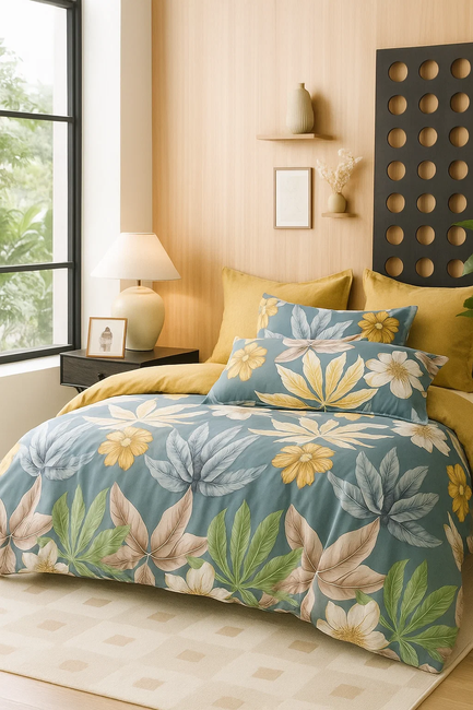 Pościel flanelowa gruba zimowa ciepła w kwiaty Garcia 200x220 3 el. A-051